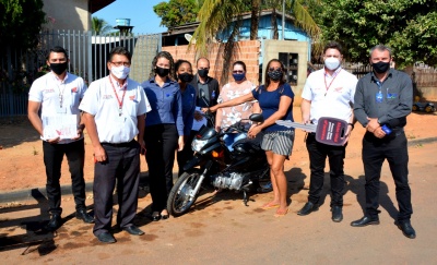 A moto Pop Honda, 0 Km foi entregue na manhã desta segunda-feira (14) para Jovelina Aparecida da Silva Pinto, moradora de Santa Carmem.