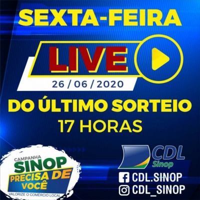 Nesta sexta-feira, 26/06, as 17 horas, a Câmara de Dirigentes Lojistas de Sinop realiza o segundo e último sorteio da campanha “Sinop precisa de você”.